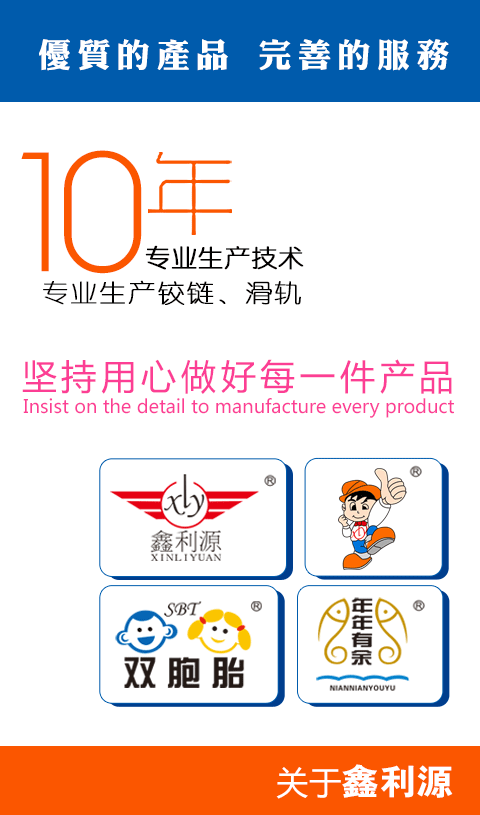 xingliyuan Hardware Products Factory is a professional enterprise which is dedicating to the furniture hardware fittings containing hinges, slide and door hinge etc., there are different materials such as stainless steel and iron that can satisfy various needs of customers.